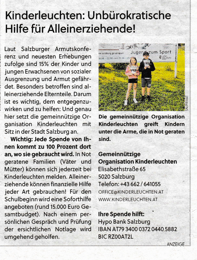 Es ist schwer in Worte zu fassen, wie dankbar ich Kinderleuchten bin. Als alleinerziehender Elternteil steht man oft vor Herausforderungen, die kaum jemand nachvollziehen kann, besonders in schwierigen Zeiten. Die finanzielle Unterstützung von Kinderleuchten war für mich nicht nur eine enorme Entlastung, sondern ein Zeichen von echter Menschlichkeit und Mitgefühl.